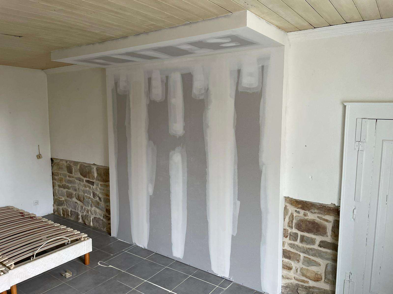 Installation de plaque de plâtre : Nous posons des plaques de plâtre pour la création de cloisons, doublages et plafonds, assurant une finition impeccable et durable.